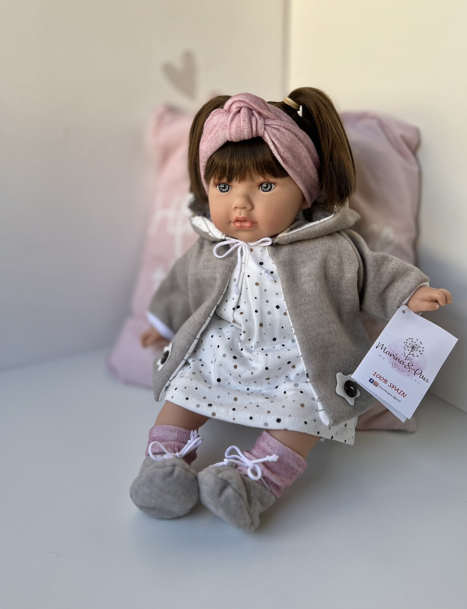 Meet the charming doll from Marina&Pau, 45 cm tall. She has a soft stuffed body and parts made of high-quality vinyl with a pleasant vanilla scent. The doll is perfect for hugs and role-playing. The doll has nylon hair and a high-quality outfit. All elements are removable. Marina&Pau products are handmade in a factory in Spain with attention to every detail. The brand’s dolls combine craftsmanship and a high standard of quality. Size: 45 cm Material: high-quality vinyl and soft stuffed body Scent: vanilla Manufacturer: Marina&Pau Spain