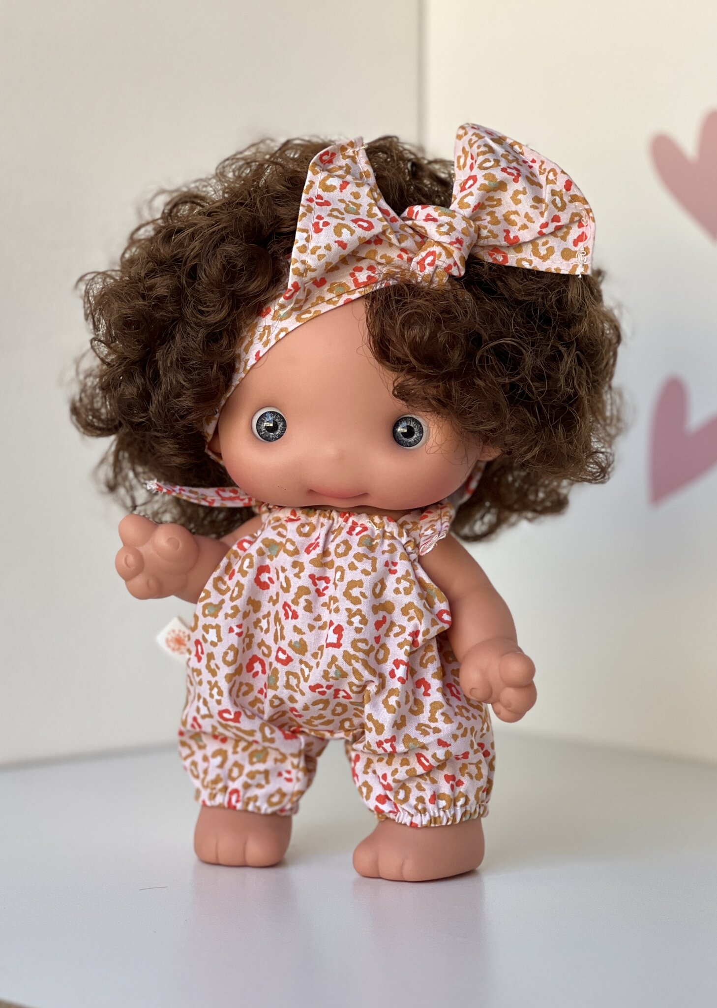The Piu series doll is a humanoid creature with 4 fingers on its hands. The set includes: factory outfit and gift box. Has a branded tag-passport and a stamp, movable body parts, can be bathed. Size 25 cm, material: vinyl and nylon, manufacturer: Spain. Without anatomical sexual characteristics and aroma.