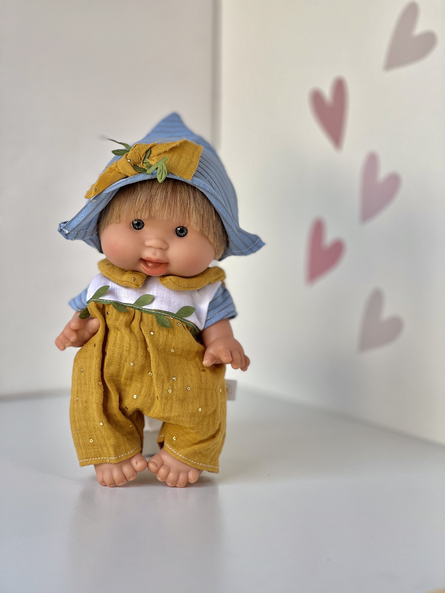Scented doll, boy, yellow jumpsuit, 26cm (Marina&Pau)
