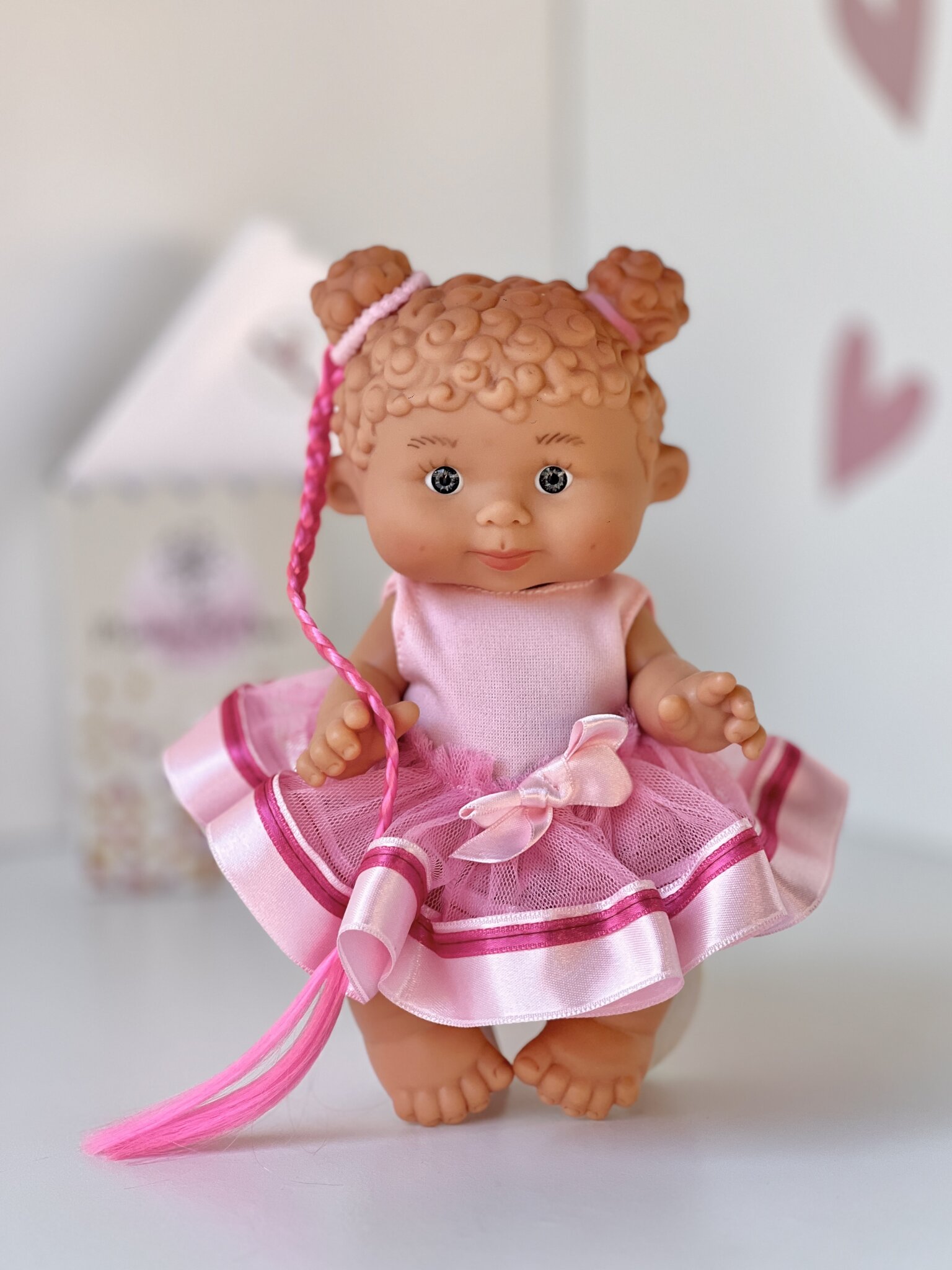 Scented doll, girl, curly with buns, BEAUTY series, 21cm (Marina&Pau)
