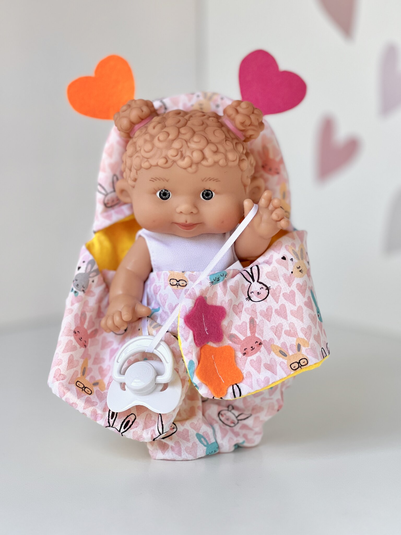 Scented doll, girl, curly with buns, in a carry bag, 21cm (Marina&Pau)