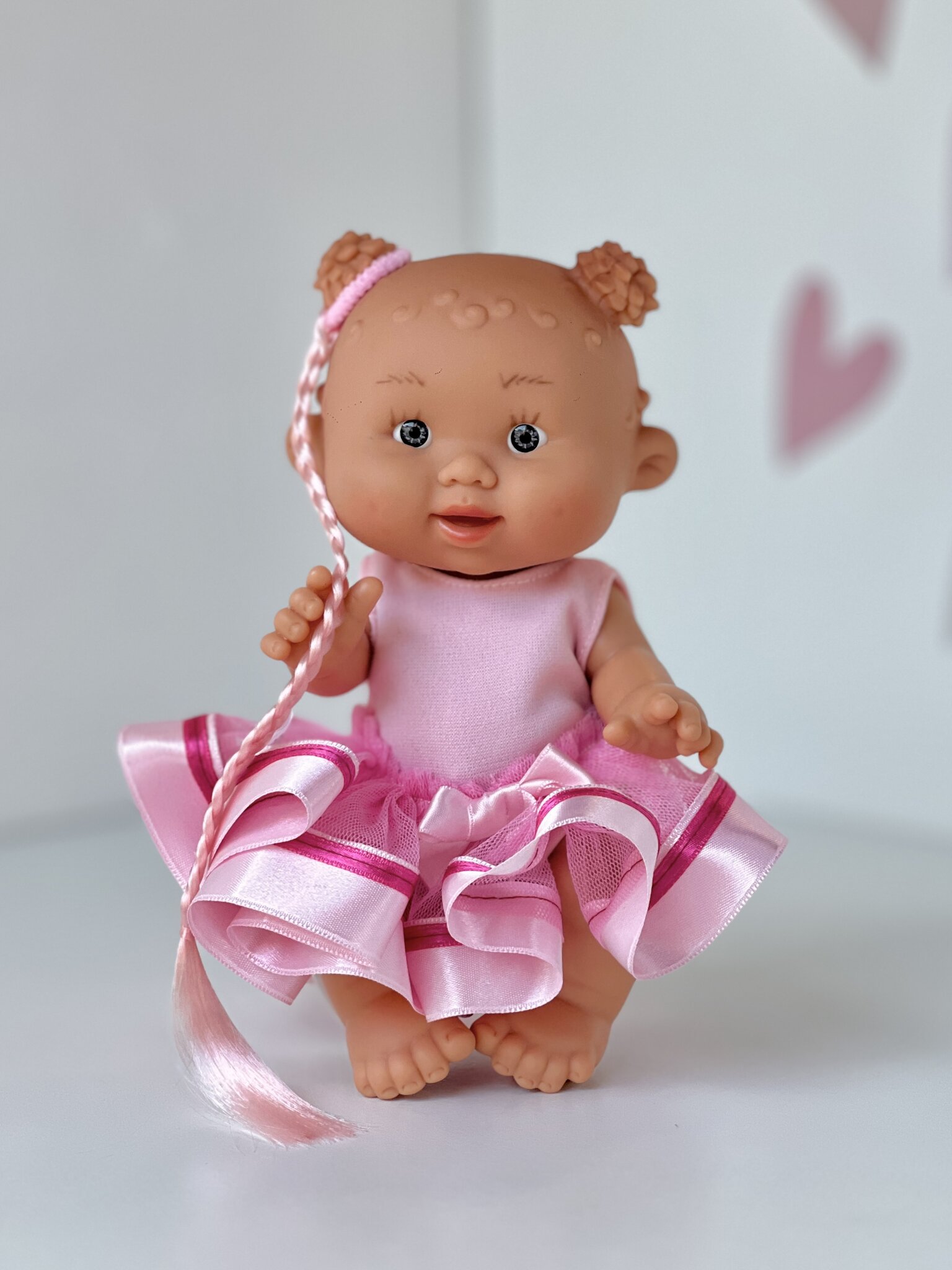 Miniature doll 21 cm tall, made of high quality vinyl. The set includes a factory outfit and gift wrapping. The doll has anatomical sexual characteristics, movable body parts and the ability to bathe. The vanilla aroma lasts for more than 10 years. The product is 100% original with a passport tag on the clothes and a brand on the neck. Manufacturer: Spain (Marina&Pau).