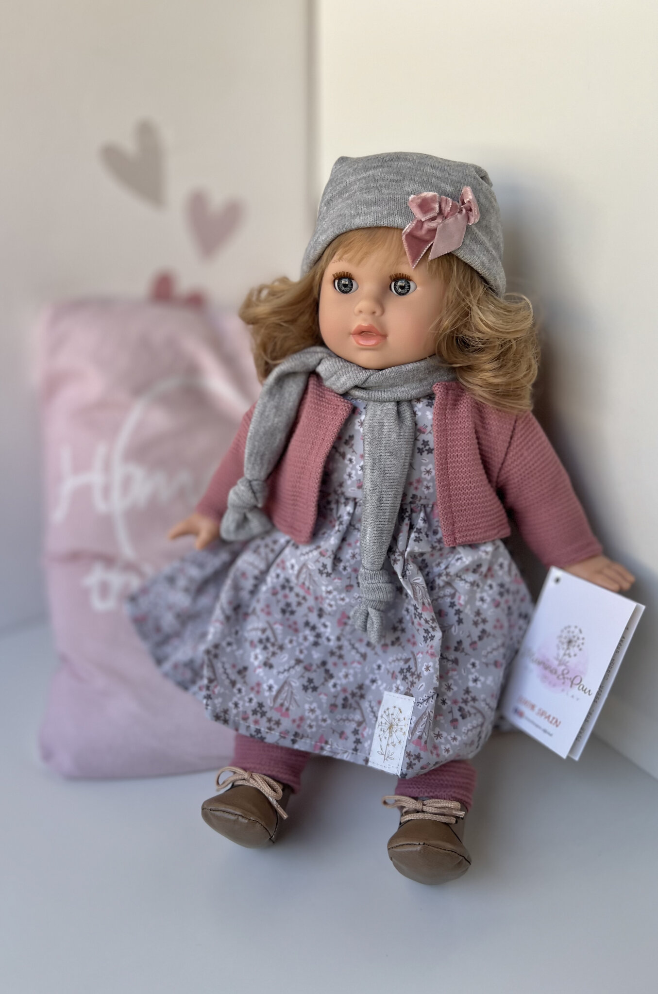 The 42 cm tall TINA doll from Marina & Pau is created with attention to the smallest details. She has expressive eyes that automatically open and close depending on the position of the body. The look is emphasized by eyelashes and carefully drawn eyebrows. The head, arms and legs are made of high-quality vinyl, the body is soft-stuffed with a textile lining – ideal for hugs and everyday play. The head turns, which allows you to comb the hair and easily change the poses of the doll. All elements are removable. Size: 42 cm Material: high-quality vinyl and soft-stuffed body Aroma: vanilla Manufacturer: Marina & Pau Spain