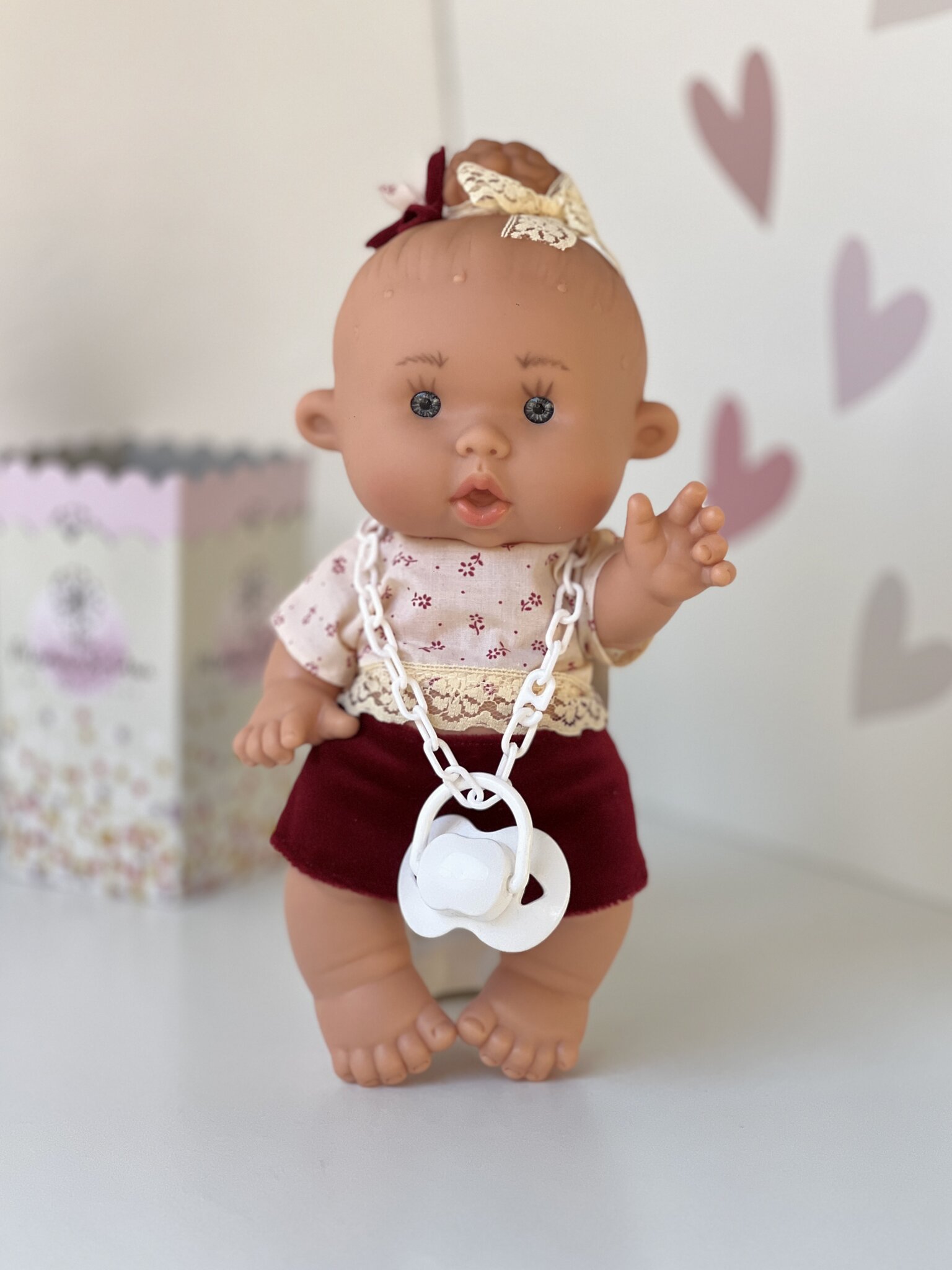 אנו מציגים לתשומת לבך בובה אהובה לילדים מגיל 1.5 ומעלה! בובה זו בגובה 26 ס"מ עשויה מויניל באיכות גבוהה וכוללת מאפייני מין אנטומיים. כולל תלבושת מפעל, מוצץ על שרשרת וקופסת מתנה. ניתן לרחוץ את הבובה, והחלקים הנעים שלה הופכים את המשחק למהנה עוד יותר. ארומת הווניל נמשכת יותר מ-10 שנים, והמקוריות מאושרת על ידי תג דרכון ממותג על בגדים ומותג על הצוואר. יצרן: החברה הספרדית Marina&Pau.