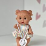 בובה מיניאטורית גובה 21 ס"מ עשויה ויניל איכותי. הסט כולל תלבושת מפעל, מוצץ עם סרט וקופסת מתנה. לבובה מאפיינים מיניים אנטומיים, חלקי גוף נעים ויכולת רחצה. ארומת הווניל נמשכת יותר מ-10 שנים. לכל בובה תג דרכון ממותג וחותמת על הצוואר המאשרת מקוריות. יצרן: ספרד (מרינה ופאו).
