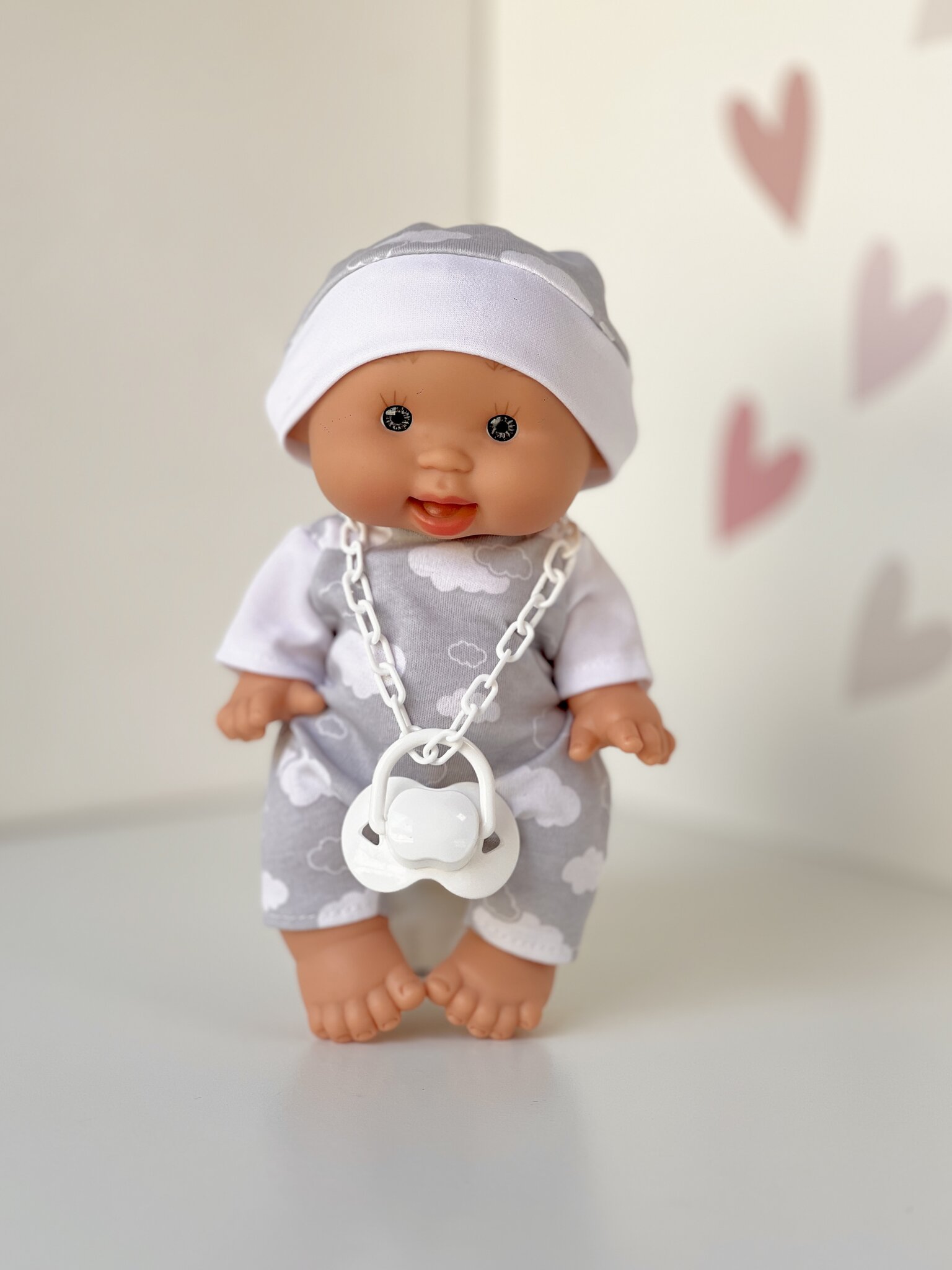 בובה לילדים מגיל 1.5 היא מתנה אידיאלית! גובה 26 ס"מ, עשוי ויניל איכותי בעל מאפייני מגדר אנטומיים. הסט כולל תלבושת מפעל, מוצץ על שרשרת וקופסת מתנה. ניתן לרחוץ את הבובה, חלקיה ניתנים להזזה. ארומת הווניל נמשכת יותר מ-10 שנים. מקוריות מאושרת על ידי תג דרכון וחותמת על הצוואר. יצרן: החברה הספרדית Marina&Pau.
