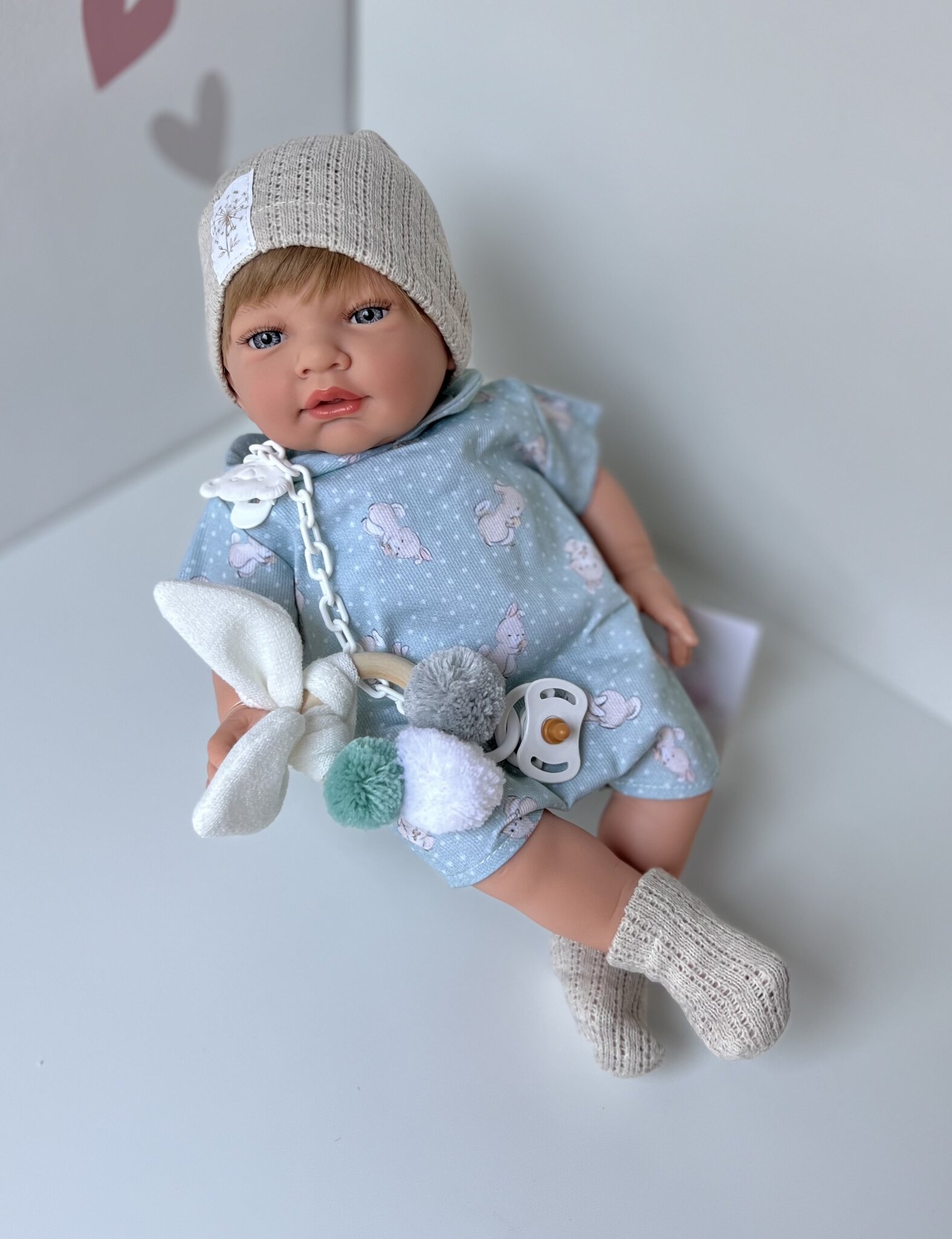 08.09.2025בובת ארנבת בכחול 42 ס"מ, מרינה ופאו