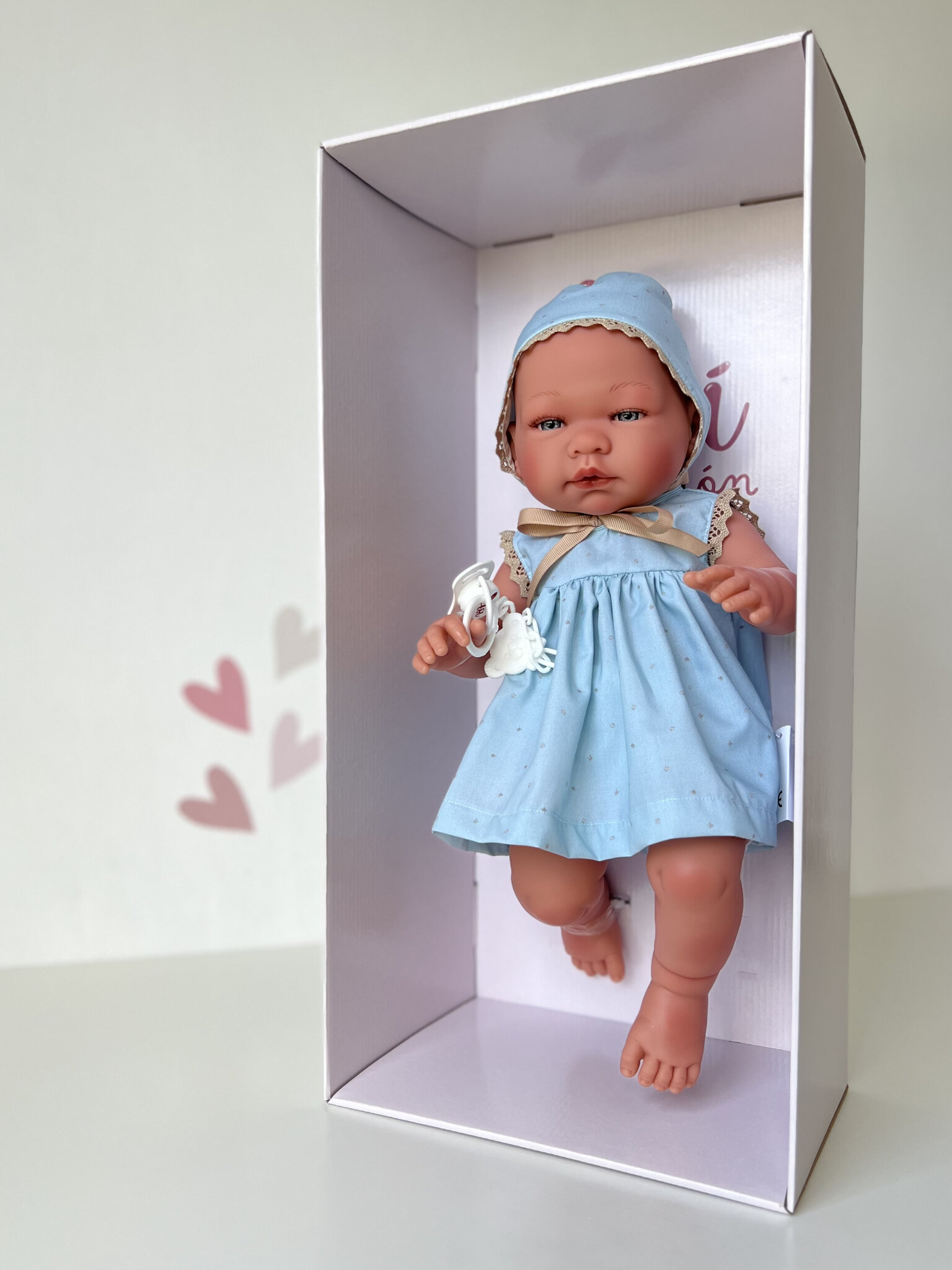 בובת המשחק מריה, שנולדה מחדש, היא דגם ריאליסטי של תינוק בן יומו, עשויה ברמת פירוט גבוהה. מתאימה למשחקים וכמתנה, או בובת אספנות. הגוף עשוי כולו ויניל, נעים למגע וקרוב בגוון לעור טבעי. לבובה מאפיינים מיניים. כל הקפלים על הזרועות והרגליים, האצבעות עם ציפורניים ורגליים חצי כפופות מעובדות. ניתן לרחוץ את הבובה. למריה פנים אקספרסיביות עם ריסים טבעיים, לחיים ורודות, אף סתום ופה פתוח בעדינות. הבגדים עשויים מחומרים איכותיים על ידי מעצבי בובות ספרדים. הסט כולל מוצץ עם מחזיק בצורת דוב. גודל: 43 ס"מ חומר: ויניל איכותי ריח: אין יצרן: ASI ספרד