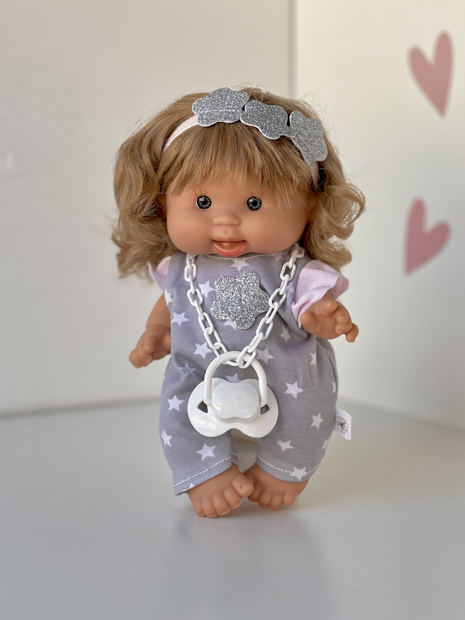 Кукла для детей от 1,5 лет, высотой 26 см, из высококачественного винила. В комплекте фабричный наряд, пустышка на цепочке и подарочная коробка. 100% оригинал с биркой-паспортом и клеймом на шее. Имеет анатомические половые признаки, подвижные части и возможность купания. Ванильный аромат сохраняется более 10 лет. Производитель: Испания (Marina&Pau).