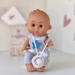 Миниатюрная кукла высотой 21 см выполнена из высококачественного винила и обладает анатомическими половыми признаками. В комплект входят фабричный наряд, соска на ленточке и подарочная упаковка. Кукла имеет подвижные части тела и может быть купана. Аромат ванили сохраняется более 10 лет. Оригинальность подтверждается биркой-паспортом на одежде и клеймом на шее. Производитель: Испания (Marina&Pau).