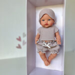 Классическая кукла ростом 36 см. Кукла не имеет половых признаков и полностью выполнена из винила высокого качества.Детально проработаны складочки на теле, пальчики с ногтевыми пластинами, полусогнутые ножки. Цвет винила приближен к натуральному оттенку кожи. Куклу можно купать.У куклы прорисованные волосы, глаза без ресничек, аккуратный носик, приоткрытый рот и пухлые щёчки. Размер и вес куклы удобны для детских рук.Одежда сшита из качественных материалов испанскими дизайнерами.