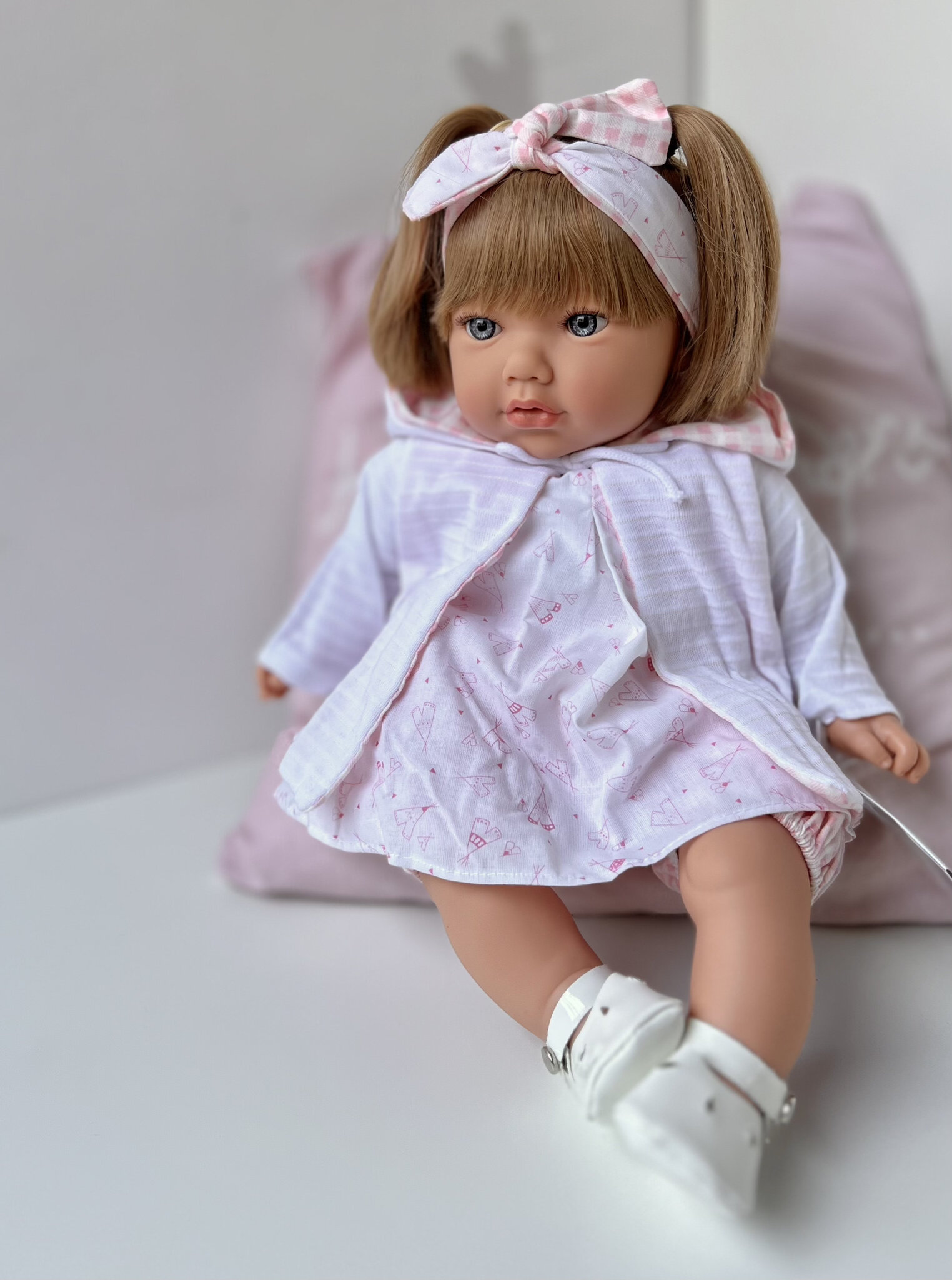 Познакомьтесь с очаровательной куклой от Marina&Pau ростом 45 см. У неё мягкое набивное тело и детали из высококачественного винила с приятным ароматом ванили. Кукла идеально подходит для объятий и сюжетных игр.У куклы нейлоновые волосы и качественный наряд. Все элементы съёмные.Продукция Marina&Pau создаётся вручную на фабрике в Испании с вниманием к каждой детали. Куклы бренда сочетают мастерство исполнения и высокий стандарт качества.