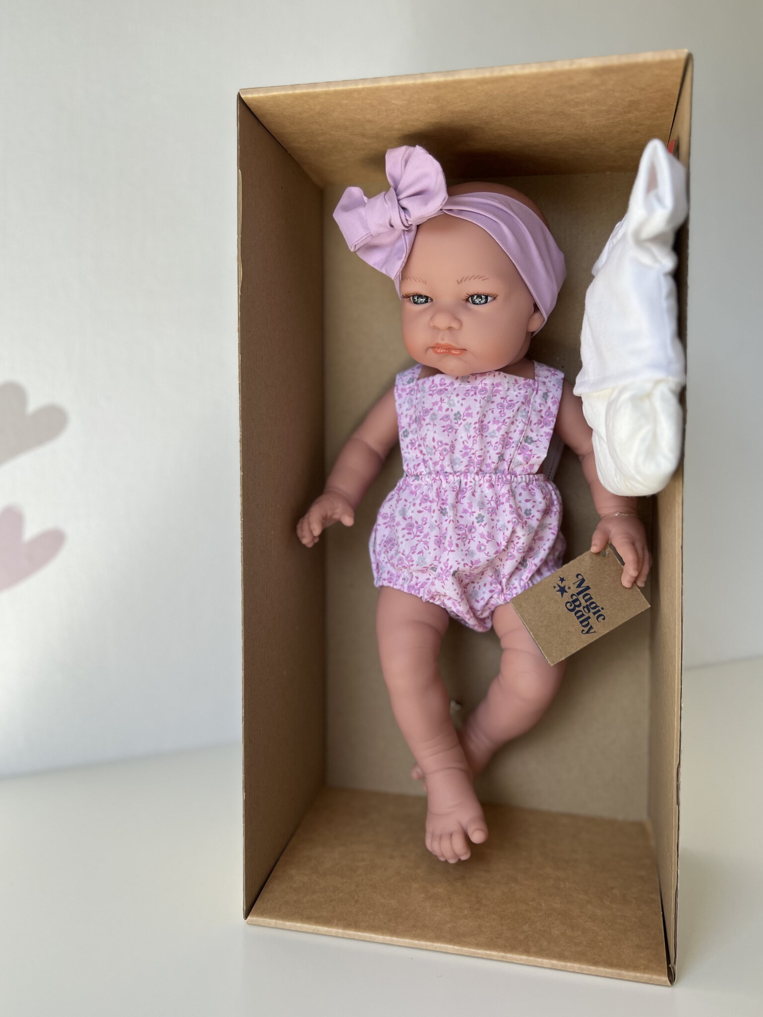 Оригинальная кукла Jenny от испанской фабрики LAMAGIKРеалистичная малышка с анатомическими признаками и детальной проработкой тела. Выполнена из приятного на ощупь винила с естественными складочками, как у настоящего младенца. Все части тела подвижны.Кукла ароматизирована лёгким ванильным запахом. У неё акриловые глаза с ресницами, которые не закрываются, и прорисованные волосы на голове. Вся одежда легко снимается.